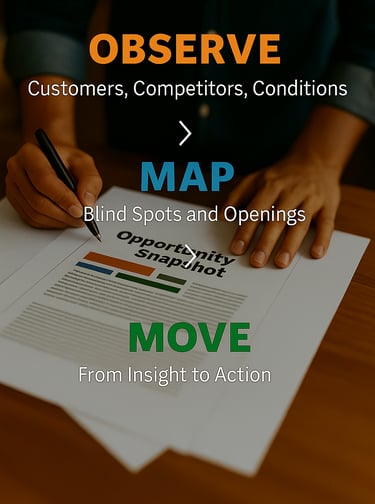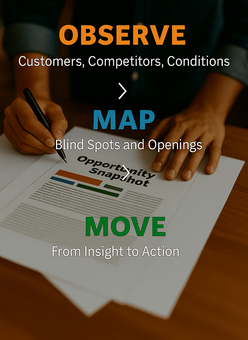 That’s why I built the Opportunity Suite — beginning with the Opportunity Scan™ for a quick read, the Snapshot™ for a deeper diagnostic, and the Signal™ for focused action. Each step gives you clarity without the noise.